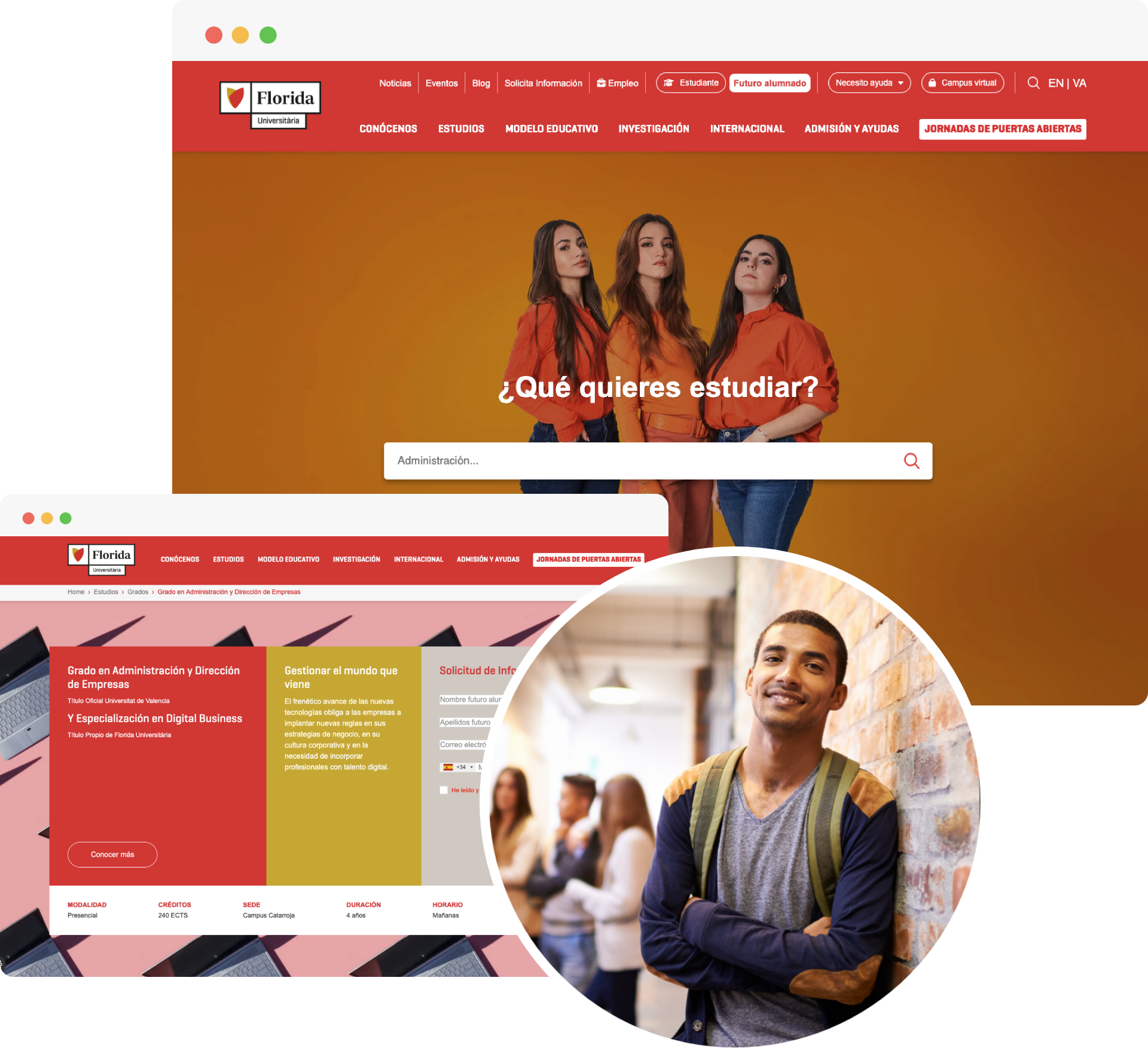 El resultado es una herramienta que transmite confianza y refuerza la percepción de excelencia de Florida Universitaria. La página no solo refleja sus valores de innovación y calidad, sino que ofrece a cada visitante una experiencia digital alineada con el nivel académico de la institución. Una web que acompaña el crecimiento, facilita la captación de nuevos alumnos y convierte la primera impresión en un punto de partida sólido para una relación a largo plazo.